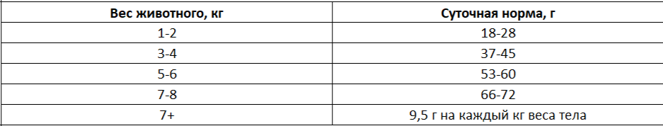 Сырой протеин 28,2%, сырой жир 12%, сырая клетчатка 2,17%, сырая зола 5,85%, влага 10%, кальций 1,56 %, фосфор 0,83%, магний 0,09%, калий 0,62%, натрий 0,43%, хлориды 0,32%, лизин 1%, триптофан 0,18%, метионин + цистин 1%, таурин 0,2%, омега 3 жирные кислоты 0,38%, омега 6 жирные кислоты 2,23%.